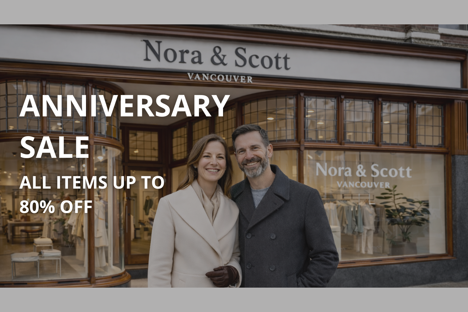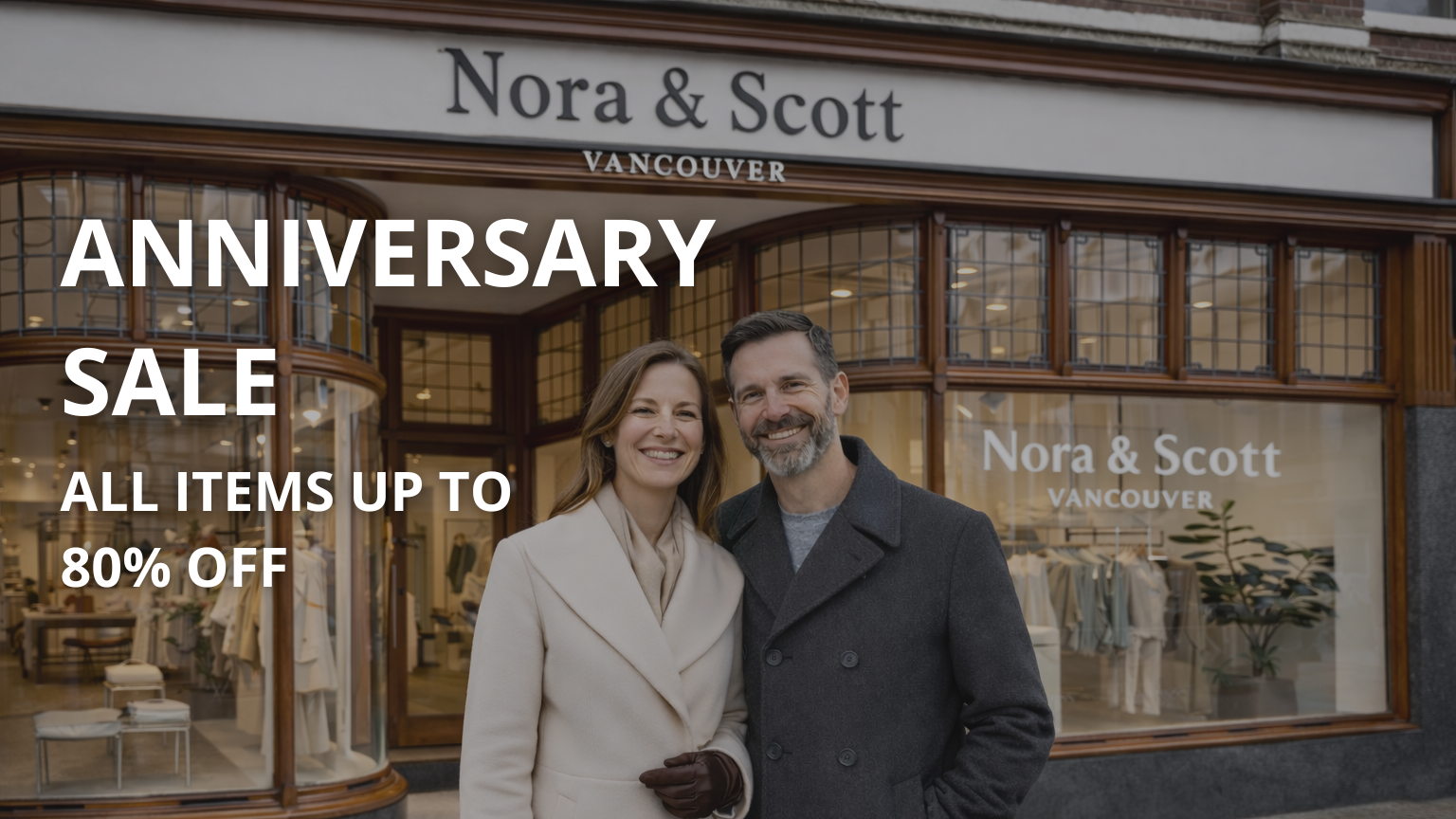 At Nora & Scott Vancouver, we’re celebrating our Anniversary Sale as a heartfelt thank you for your support over the past 15 years. What started as a small boutique has grown thanks to the trust and loyalty of our customers.